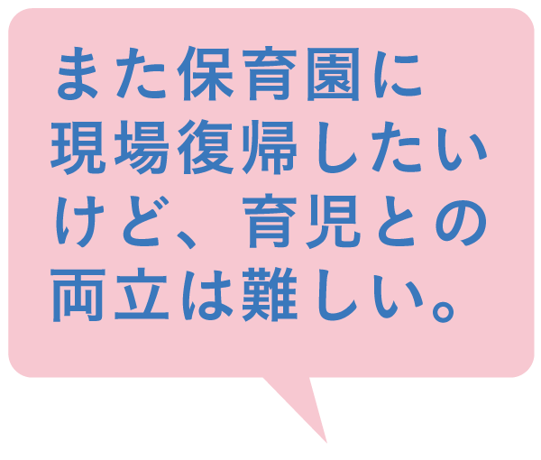 急な子どもの体調不良でも、別の託児員スタッフで調整、交代ができることもあります。皆で助け合いをしながら働いています。